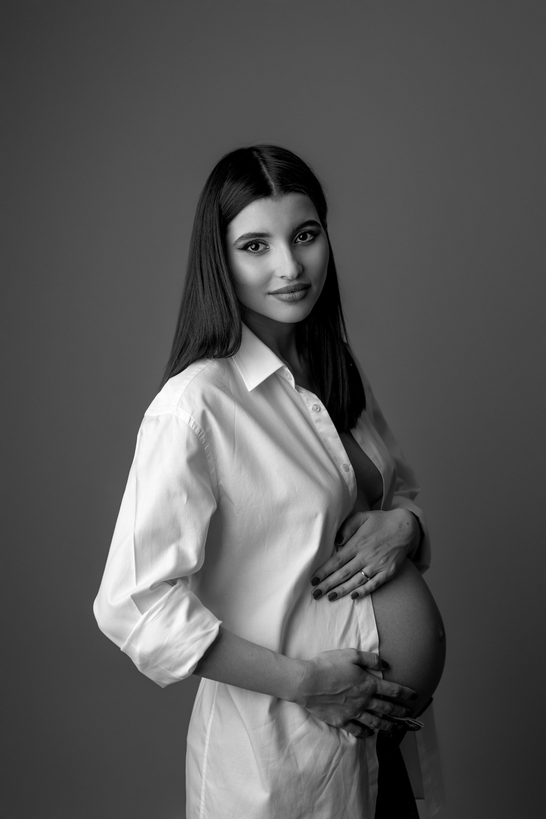 Sedinte foto de gravide Bucuresti-Studio Foto maternitate premium Bucuresti-Sedinta foto maternitate artistica alb negru